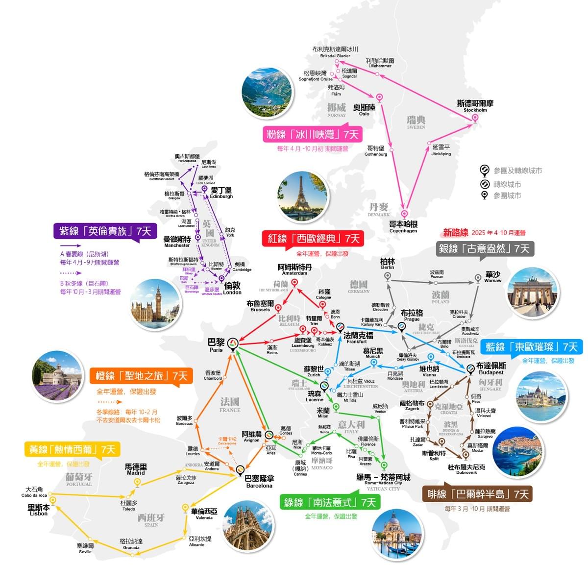 9 條歐洲旅遊路線,每週循環,暢遊23個國家83座城市!